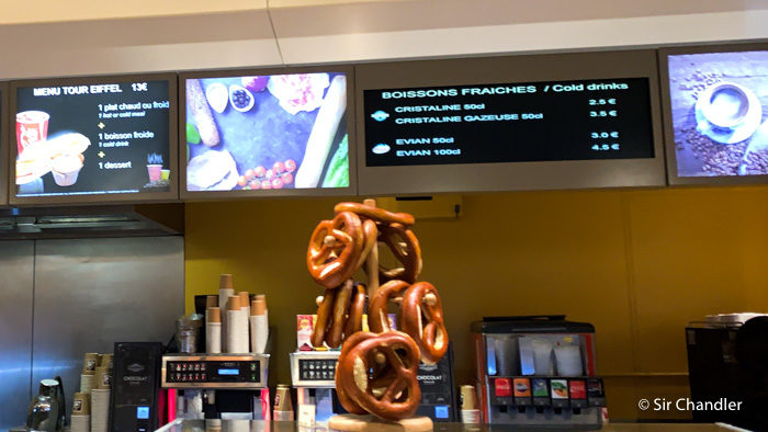 En el video que pego abajo se verán precios de distintas cosas, pero un «menú Tour Eiffel» estaba unos 13 euros