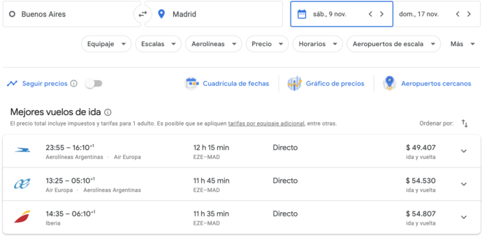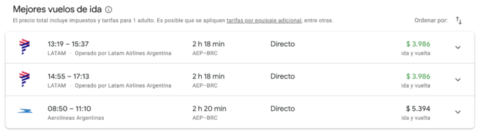 Pero quería hacer este pantallazo de los nuevos valores de los pasajes buscados sin tiempo específico. Cuando uno necesita X fecha y con poco tiempo, eso siempre es caro.