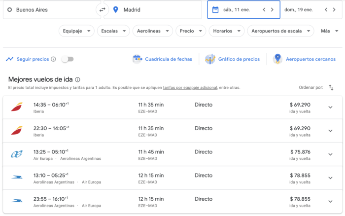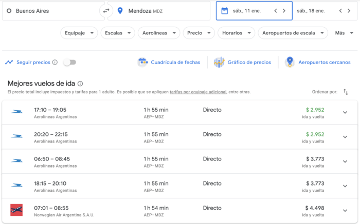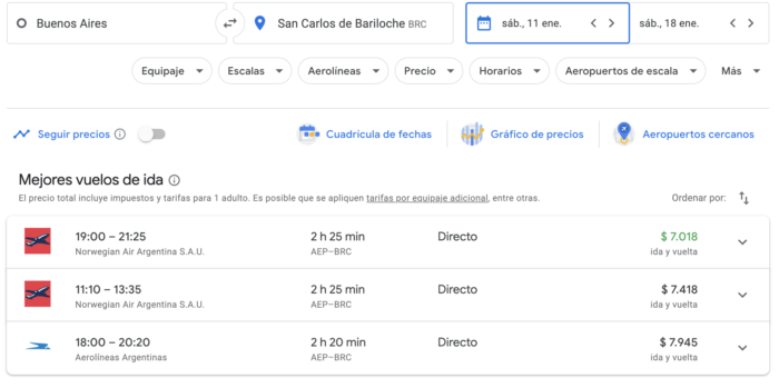 Busco en enero ya saliendo de sábado a sábado y son 7.000, con Norwegian. Aerolíneas no está muy lejos.