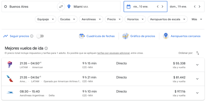Ahora enero se dispara a $55.000 en una sola opción… con Latam, porque American está por encima de los 80K y Aerolíneas 97K. TODO DEPENDE DE LA FECHA Y DE LA OCUPACION de cada una. Que seguramente previa a la disparada tenía ya buenas ventas