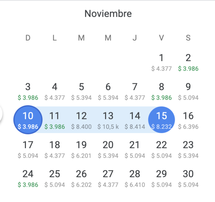 Noviembre con tarifas dispares según las fechas. Rápidamente se puede ver en este calendario