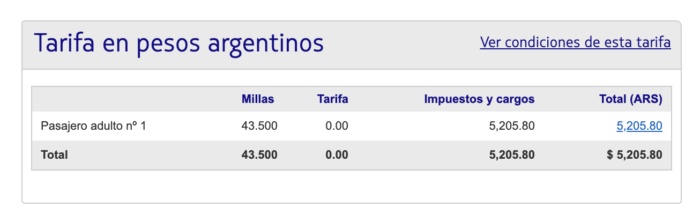 En cuanto a tasas, simulé un canje a Nueva York en Latam y el valor de tasas fue de $5.205,80