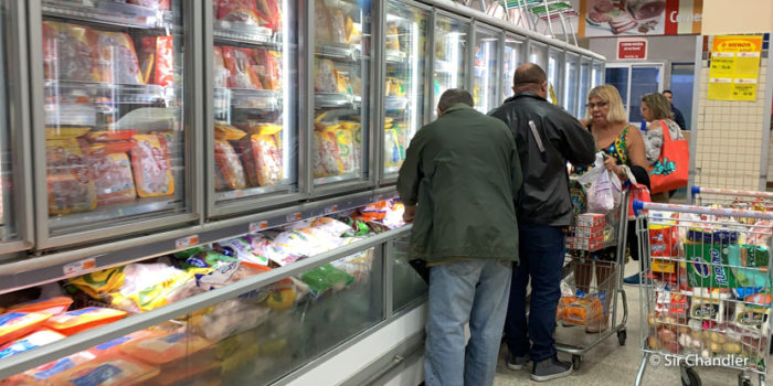 me llama la atención el chango lleno, la última vez que vi eso en la Argentina, era en la década del 90, donde hasta se llenaban 2 changos ! y que surtido se ve todo, acá salvo Jumbo, todo da pena