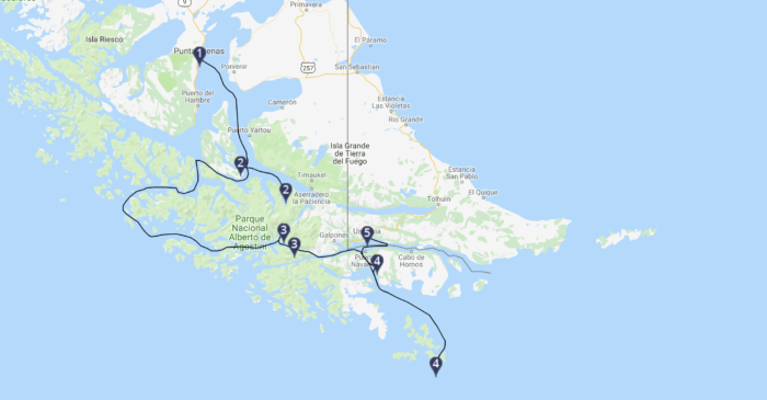 Y para los que se quedan con ganas de barco pueden seguir por tierra hasta Puerto Natales y alli tomar el barco que navega hasta Puerto Montt (a la altura de bariloche) Ese barco tarda tres dias y tambien es una experiencia increible… aunque suele moverse un poco cuando sale de los fiordos y navega por mar abierto