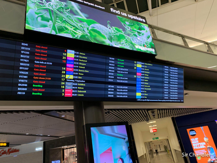 Ni bien se entra en el lobby están los carteles indicando la posición de las aerolíneas. Norwegian en este caso estaba pegada a esa entrada