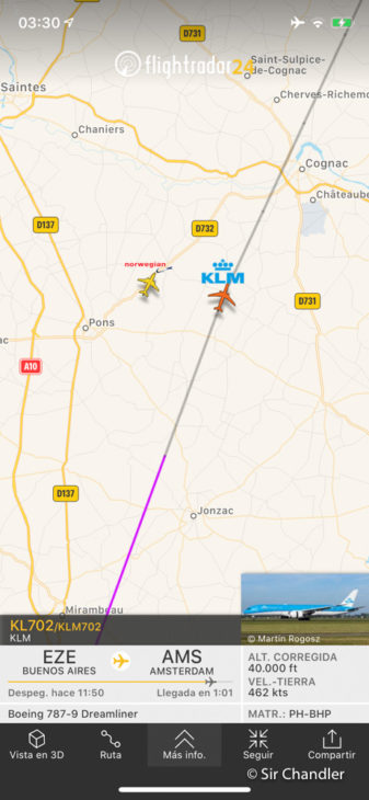 Bueno, para eso sirve el wifi para poder usar Flightradar24 😉 era un Norwegian