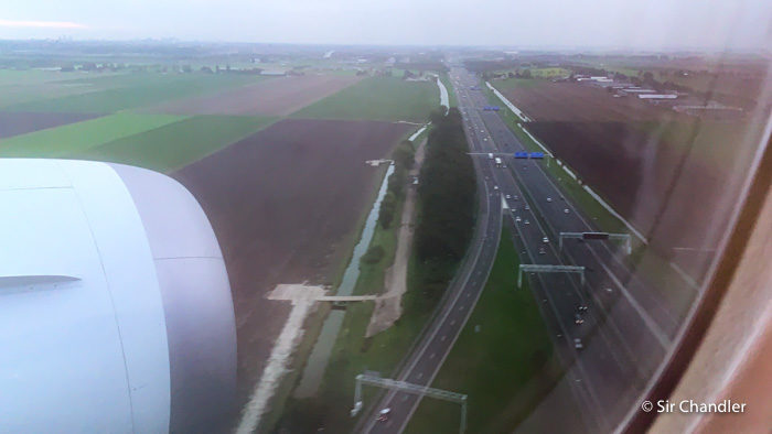 Y la aproximación final a Schipol, el aeropuerto de Amsterdam ya con el cielo feo como fue todo el día