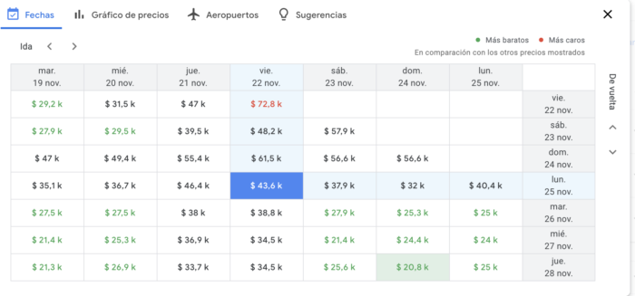 En el momento de sacar este post, yendo un día antes y volviendo el día siguiente, el costo es de más de 60.000 pesos y no saltan opciones directas en los resultados, por lo que seguramente ya está todo agotado