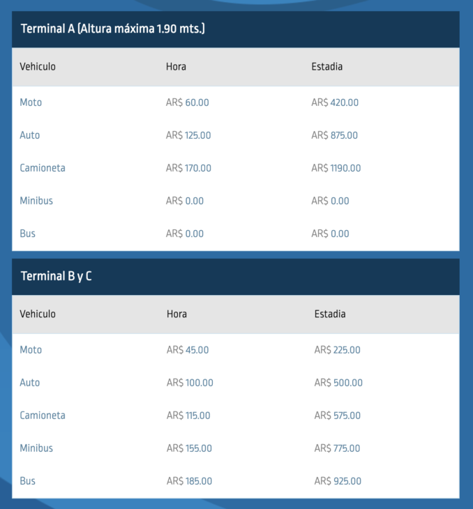 Un lector reportó hace unos días en twitter que hubo aumento de precios en el estacionamiento y estos son los precios actuales. La hora en los descubiertos es de $100 y la estadía de $500. En el cubierto, que casi no se consigue lugar, es de $125 y $ 875 respectivamente.