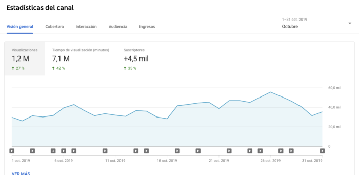 Octubre fue mi mejor mes en la historia de Youtube. Y quería compartir un reporte que indica que se vieron los videos 1.2 millones de veces lo que generó 7,1 millones de minutos reproducidos.