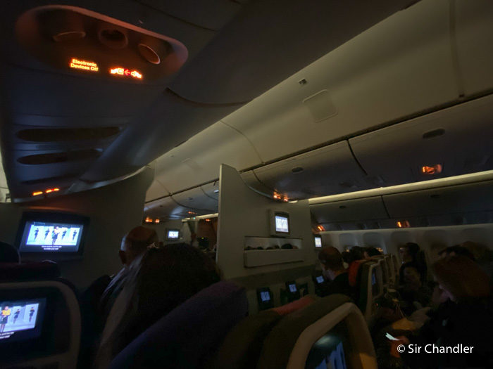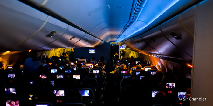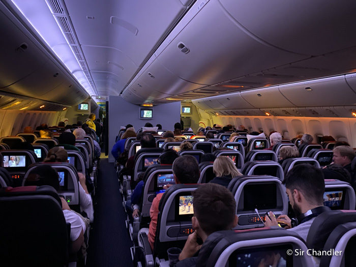 Configuración interna de la «vieja escuela» una aeronave de alta densidad de pasajeros con tres categorías,fuselaje ancho y todo lo necesario actualmente para hacer mas gratas las horas abordo. sin olvidar un punto interesante relacionado a las tripulaciones y su nacionalidad en una ruta donde la gran mayoría de los pasajeros habla «español» aquello le otorga una cercanía y calidez al servicio interesante, sin subestimar el desempeño de las tripulaciones en general independiente de su país de origen su trabajo nunca será menor.