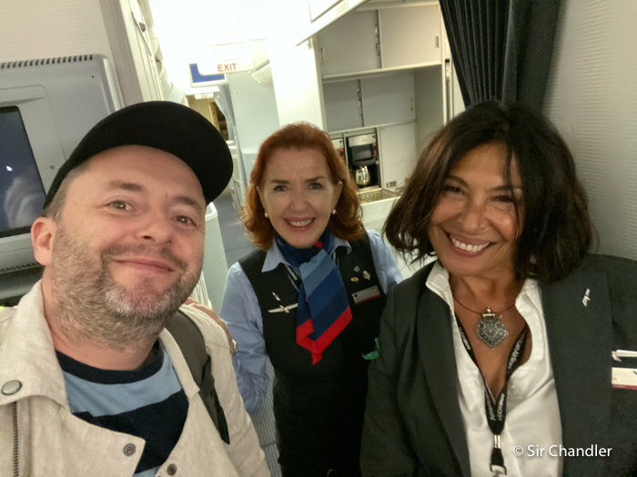 Antes de bajar me tomé una foto con otras dos TPC, que cumplieron muchos años de servicio este año… MUCHOS. No quisieran entrevista pero habrá que ablandarlas para la próxima oportunidad. Están desde BRANIFF, volaron con Fernando Peña, llevaron a 10.000 celebrities… imaginate la de anécdotas que tienen!