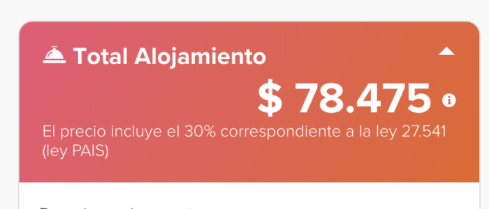 Hola Chandler, ¿que opinás de Booking? ¿será verdad que si reservas mediante esa plataforma pero el destino es dentro de Argentina y elegis la opción de pago en el alojamiento y pagas en efectivo no corresponde este impuestazo porque uno le está pagando al hotel que es residente del país y no a Booking que es residente del exterior más allá que la tarifa está dolarizada? Es la primera vez que reservo por Booking y esta plataforma no me genera nada de confianza: cuando hice la reserva, todos los pasos estaban en pesos, pude ver que está dolarizada la tarifa recién cuando imprimí la boleta, es decir después de confirmar la reserva. Por otro lado, vi un viajero dentro del mismo booking que dijo que le cancelaron la reserva solo 15 días antes del viaje.