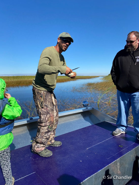 Al final para entre unos juncos y el mismo piloto saca unos y los comienza a pelar para ver la composición ¿unos qué? Hermoso lugar!