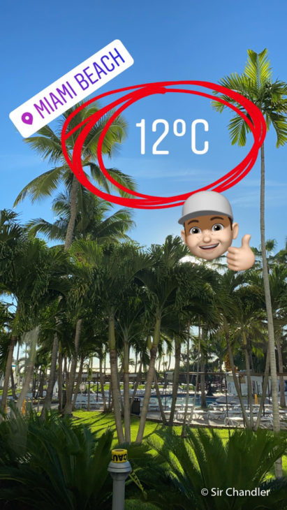 Primero quiero mostrar la temperatura de ese día, pleno diciembre en Miami, como para ver que no siempre hay «calor y humedad» y que puede estar «fresco»