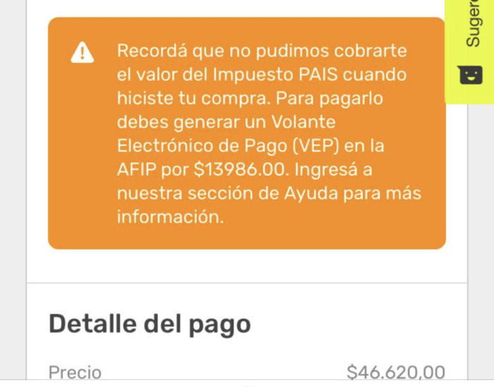 Compré un pasaje en la aerolínea «X» y en el desglose de la tarifa no encuentro el impuesto PAIS: NO SE COBRÓ. El agente de percepción debe informar el concepto haciendo referencia a la norma y el valor afectado a dicho concepto.