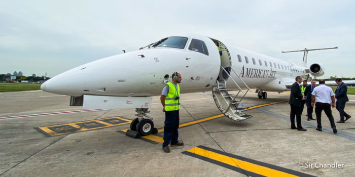American Jet parkea cerca del sector de cargas, en el mismo lugar donde antes estaba Avianca Argentina, que es un espacio para aviones más chicos.