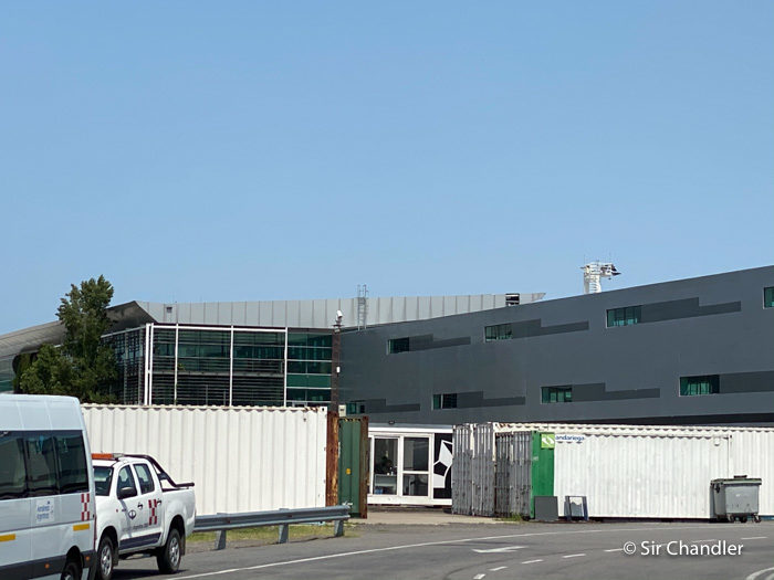 Que del otro lado siguen las pasarelas que llevan a las mangas de las últimas posiciones