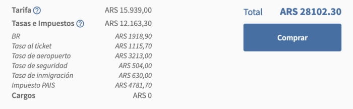 Ante la duda, siempre mirá el valor en la web de la aerolínea… no puede costar menos que eso