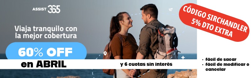 - Ojo con el seguro de viajes de las tarjetas de crédito que muchas tienen condiciones del pago total del pasaje. Revisá bien esto con tu banco. Pero siempre podés contratar un seguro de viajes por poco dinero y cuotas para viajar seguro. En Assist 365 tenés buenos precios, cuotas y tiene descuento con el blog poniendo el código SIRCHANDLER https://assist-365.com/?voucher=sirchandler