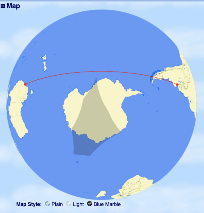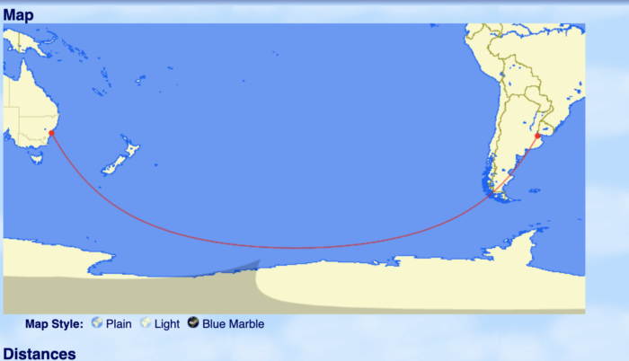 Hola Sir, como andás? Veo que está en la imagen del mapa, la Antártida, que parece va a pasar cerca del polo. Ahora la pregunta es, en un hipotético caso que sea un vuelo EZE-BQB (Ezeiza- Busselton) pasaría prácticamente sobre el polo sur. Esto un avión puede hacerlo?