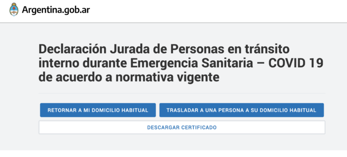tramitar la declaración jurada “Certificación para el Regreso al Domicilio Habitual”, accesible a través del sitio web