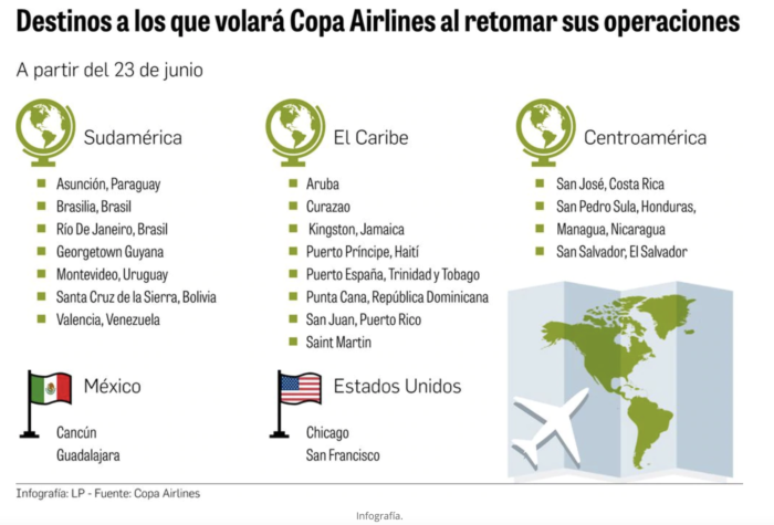 COPA anunció que el 23 de junio vuelve a volar, siempre y cuando la autoridad panameña no postergue una vez más la re apertura del aeropuerto Tocumén, «el hub de las Américas», en la capital de Panamá.