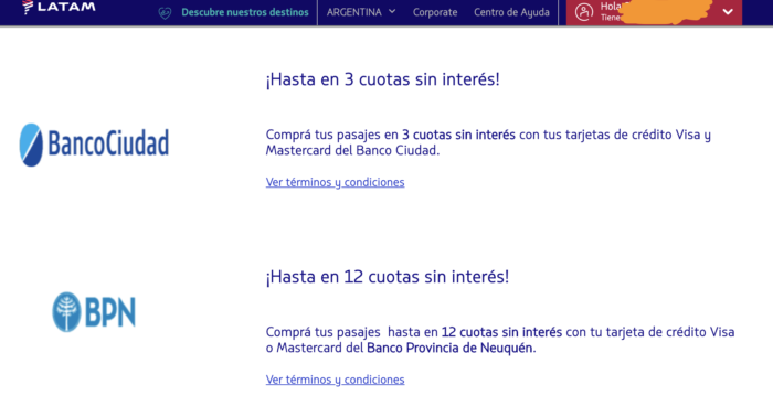 Pero buscando para armar una nota sobre esos precios de la nueva posible era… en Latam no están las chances de comprar en cuotas con el BBVA… algo que existe hace años y sobrevivió ya a algunas crisis. O sea al menos en el peor momento las cuotas mínimas estaban habilitadas al menos para los destinos más populares o los promocionados.