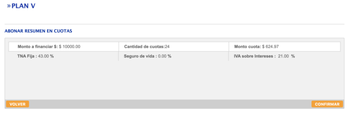 pregunta, como se ve en el resumen cuando generas un plan V la primera vez? o sea yo tengo costos por 6000 ponele y los dividi en un plan V de 2 cuotas de 3200.
