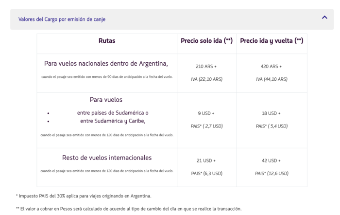 Ahora en la web de pueden ver estos cargos que se cobran por ahora, siendo más iva si es nacional o más impuesto PAIS si es internacional.