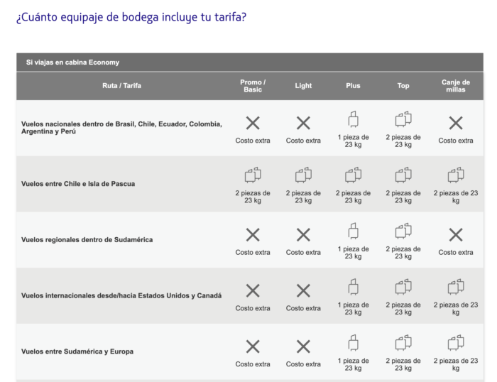 Fuera del cuadro me quedó que entre Sudamérica y México son dos piezas de 23kg y con Centroamérica y Caribe es una de 23, siempre hablando del CANJE DE MILLAS, la compra es según la tarifa/columna que abonen.
