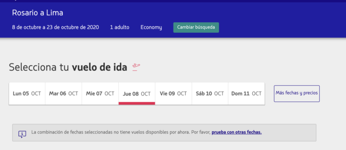 Rosario a Lima en octubre 2020 sin vuelos en esa semana
