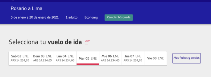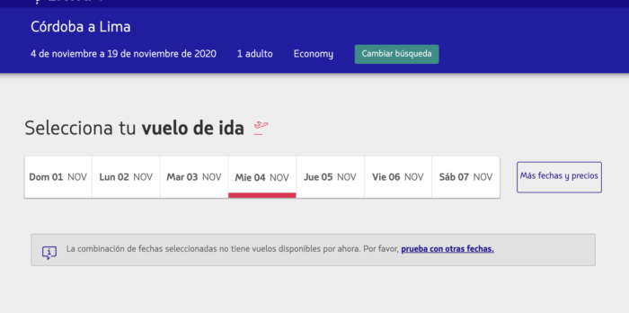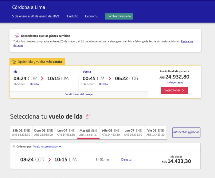 Me puse a hacer búsquedas y el clásico vuelo Rosario Lima o Córdoba Lima no figuran este año
