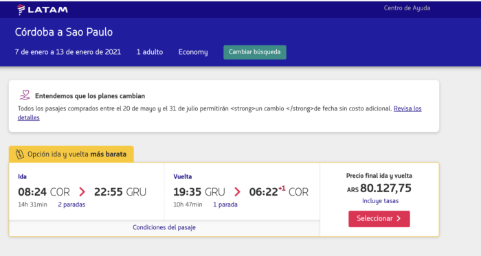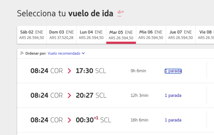 Aunque en el vuelo de vuelta, me tira una escala largúisima, entiendo que es un error.