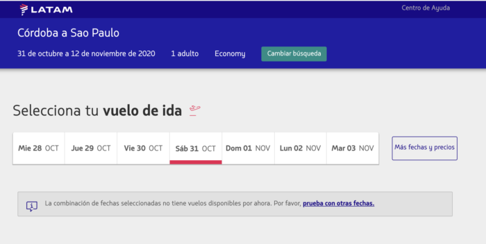 Hola Sir, has probado en vez de buscar de la forma tradicional, buscar a través de la opción múltiples destinos? Aunque tengas un solo destino, te muestra algunas opciones como agotado (lo cual es imposible). Yo tenia vuelo a MIA desde MDZ vía SCL para septiembre y me lo cancelaron, igualmente llamé a LATAM y los operadores no tienen información. Todos los días van poniendo y sacando tramos sin ponerlos a la venta ya que figuran como agotados. Espero me haya hecho entender. Saludos.