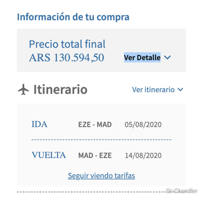 Va una observación, esta es la tarifa PLUS, no están habilitadas las otras. Esto es un vuelo especial, no deberían ser los precios «normales»