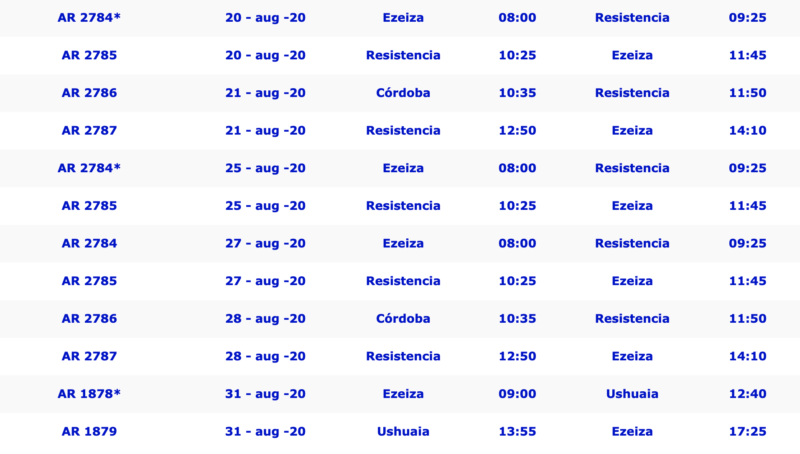Entonces por ahora, por más que aun no se vean en el sitio de Aerolíneas Argentinas, en septiembre seguirán los vuelos solo con esas ciudades.