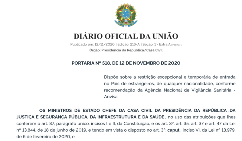 Ayer salió en algunos medios que Brasil cerraba el ingreso de extranjeros por un mes. Hay que recordar que ellos están abiertos desde agosto para que pueda entrar todo el mundo, sin restricción alguna.