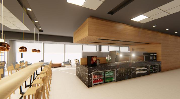 Esto sería rápido porque es un espacio donde antes había un restaurant y ahora simplemente se tuvo que reformular el espacio. Es al fondo de la terminal C y ese sería el acceso con escaleras o el ascensor