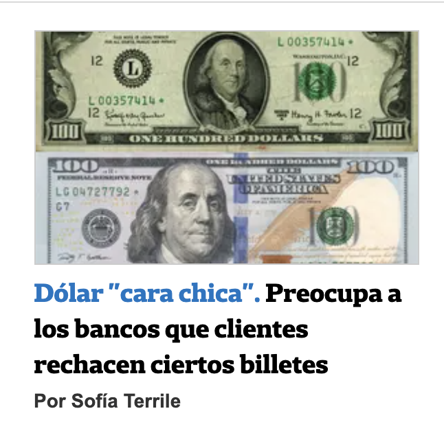 En algunas casas de cambio argentinas, legales e ilegales, no se aceptan determinadas series o los «cara chica», incluso hay sistemas sin lugar físico que si los toman, pero a un precio menor