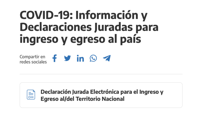 Con la aparición de los vuelos de cabotaje y el permiso… o mejor dicho AVISO de viajar en ellos, se generó una confusión con la declaración de salir o entrar al país. Por eso acá quiero revivir esto que sigue vigente ahora en noviembre y seguramente lo hará por varios meses mas.