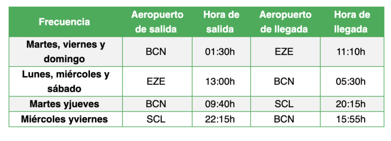 Estos son los horarios que tendrán con Ezeiza y Santiago hacia/desde Barcelona