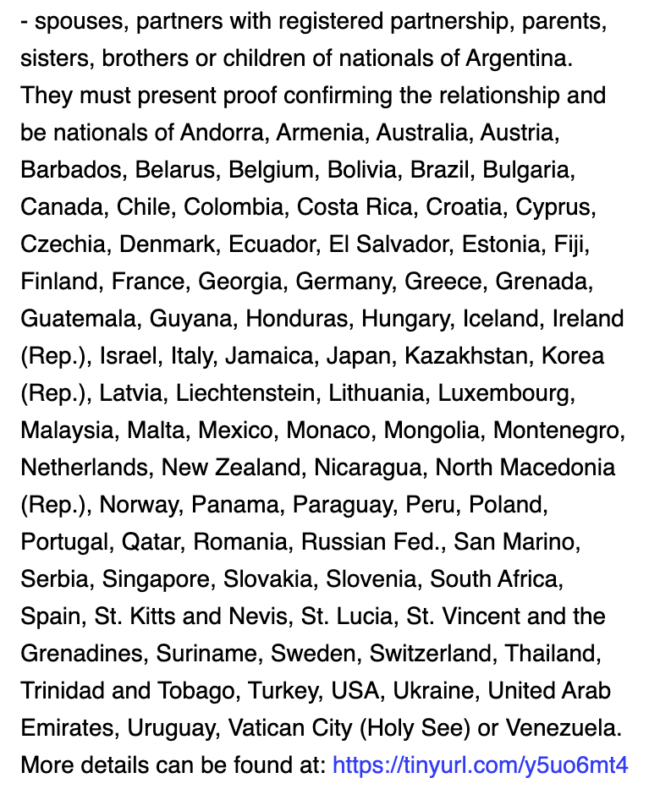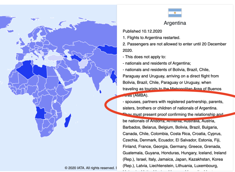 Vamos con una buena… en tiempos de comunicados que de un día para el otro cambian las cosas y marean a propios y extraños el sistema TIMATIC que usan las aerolíneas para ver los requisitos de un destino ya está actualizado con los familiares que pueden entrar… salvo que está limitado «nacionales de Argentina» y faltaría lo de residentes… pero bueno, será parte del update 11.34.32.1