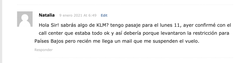 Hola sir!!! Antes que nada muy bien viaje a EE.UU, luego quería preguntarte porque ya estoy mareada.. Klm Bs.as Ámsterdam queda suspendido durante el mes de enero por las restricciones de Países Bajos a nuestro país? O se puede viajar?