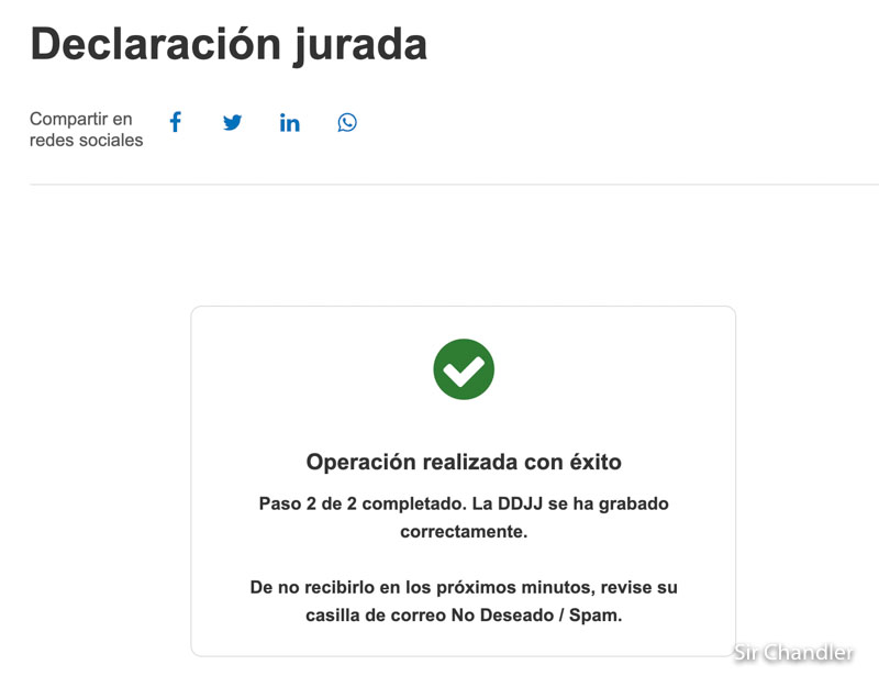Entonces llega ese mail para poder guardar la DDJJ que está adjunta, que no hace falta imprimir, se puede guardar el pdf en el celular