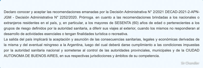Eso que está en el cuadrado celeste habla del último cambio donde recomiendan diferir sus viajes al exterior y que si te quedás afuera… Lola