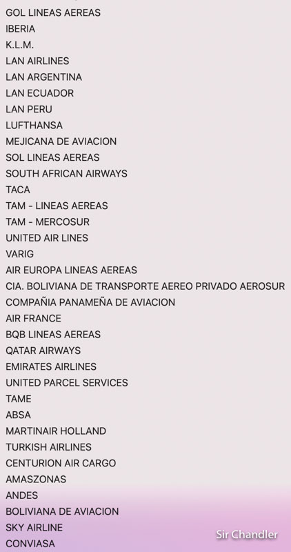 Varig, Continental, MeJicana de aviación… LADECO!! ya lo traté en otro post, pero sigue estando igual y muchos me dicen que no está COPA… porque dice Compañía panameña de aviación, que la gente no tiene por qué saber que es COPA, aunque suene lógico para muchos, porque está bien que pongan KLM, pero si le meten Koninklijke Luchtvaart Maatschappij nadie la adivina eh…