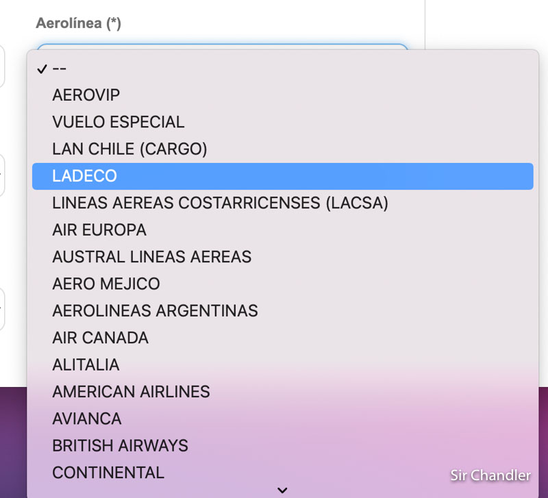 Hola Sir consulta: no aparece latam en las aerolíneas, lam airlines será lo mismo?