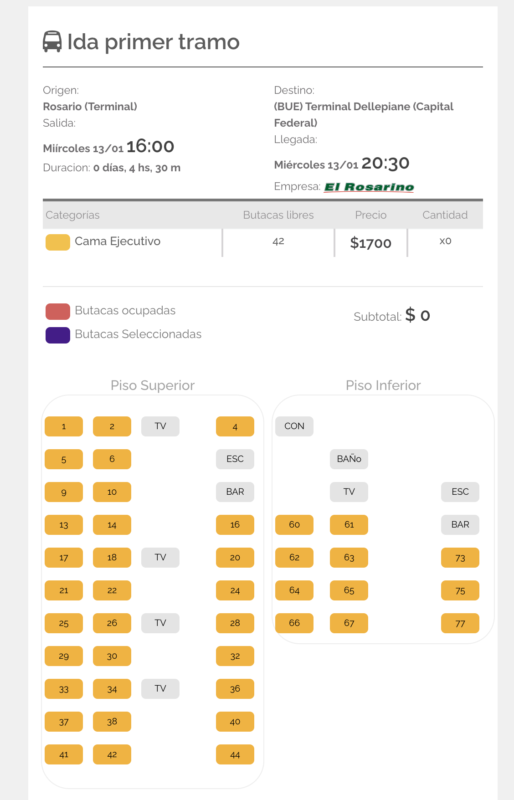 Los datos del pasaje que me mostraba también que estaba vacío totalmente. Igual creo que en el micro éramos 10 a 12, no los conté bien