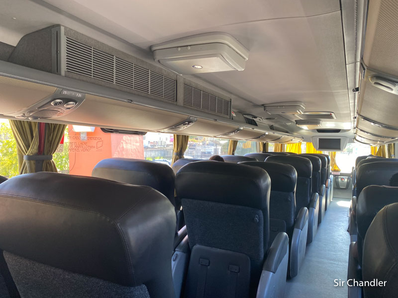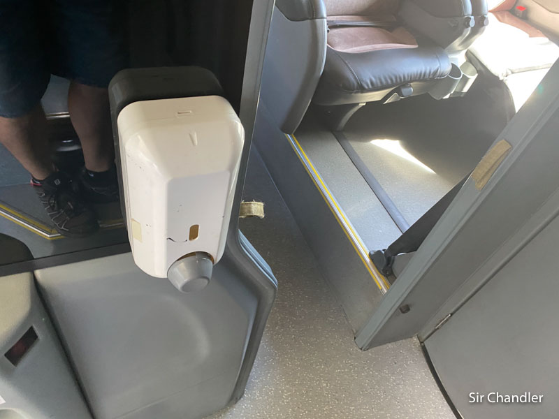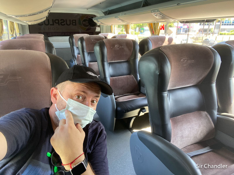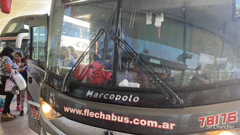 En el video se verá el momento del embarque, pero yo subí con mi ticket electrónico porque decía la web que esa empresa lo permitía, o sea mostré desde el celu y el chofer anotó en una servilleta mi asiento… y me invitó a ponerme alcohol en gel cuando subía